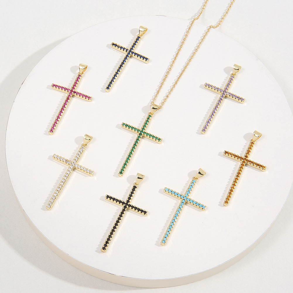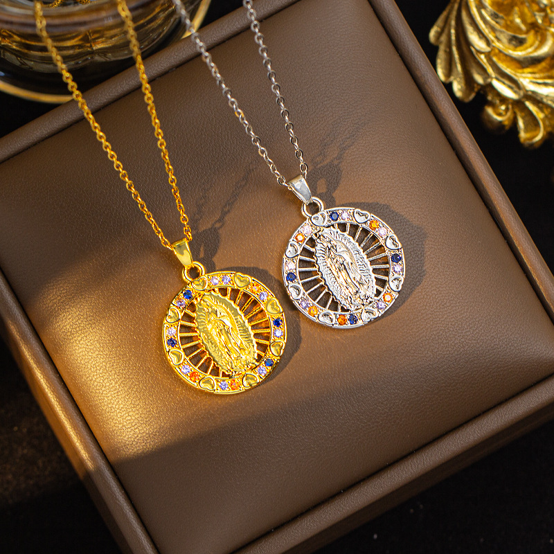 European and American Fashion Cross-Border Popular Religious Necklace Copper Inlaid with Zircon Color High-End Pendant Virgin Sweater Chain Wholesale