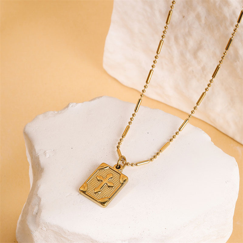 Cross-Border Commuting Cross Metal Trendy Necklace for Women Gold Religious Square Stainless Steel Cross Pendant Bamboo Chain