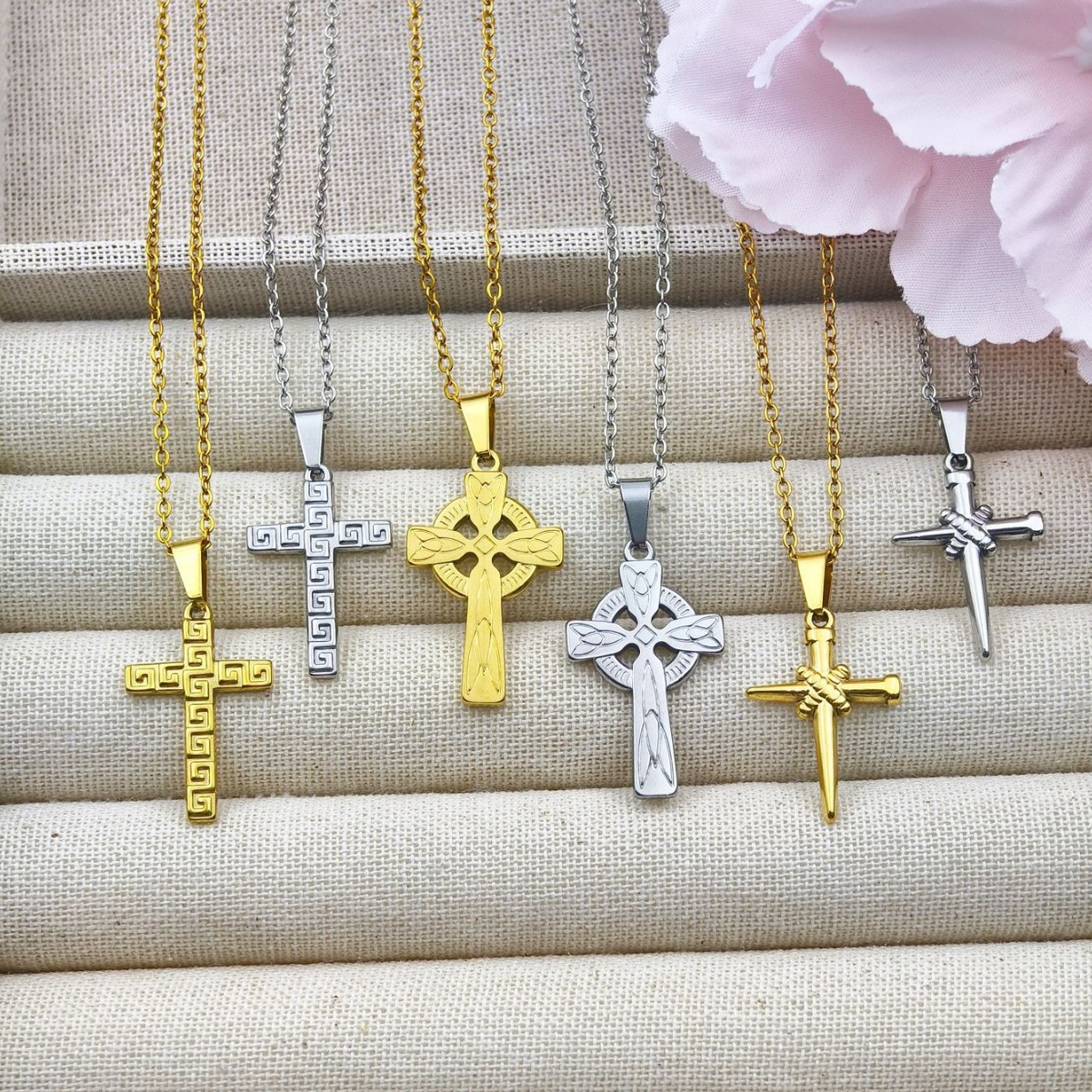 Cross Nail Pattern Necklace Pendant Small Stainless Steel Accessory Religious Holiday Simple Fashion