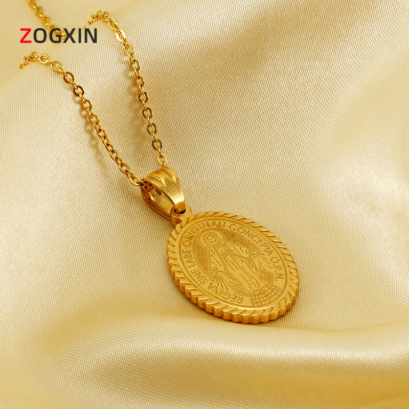 Temu Hot Selling European and American Market Wholesale Religious Temu Madonna European Coin Diamond Necklace New Gift