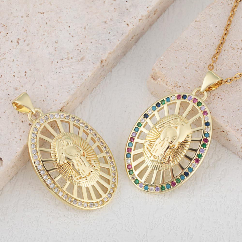 European and American New Women's Religious Jewelry Copper Micro-inlaid Zircon Pendant Virgin Mary Necklace Believer Accessories Supply