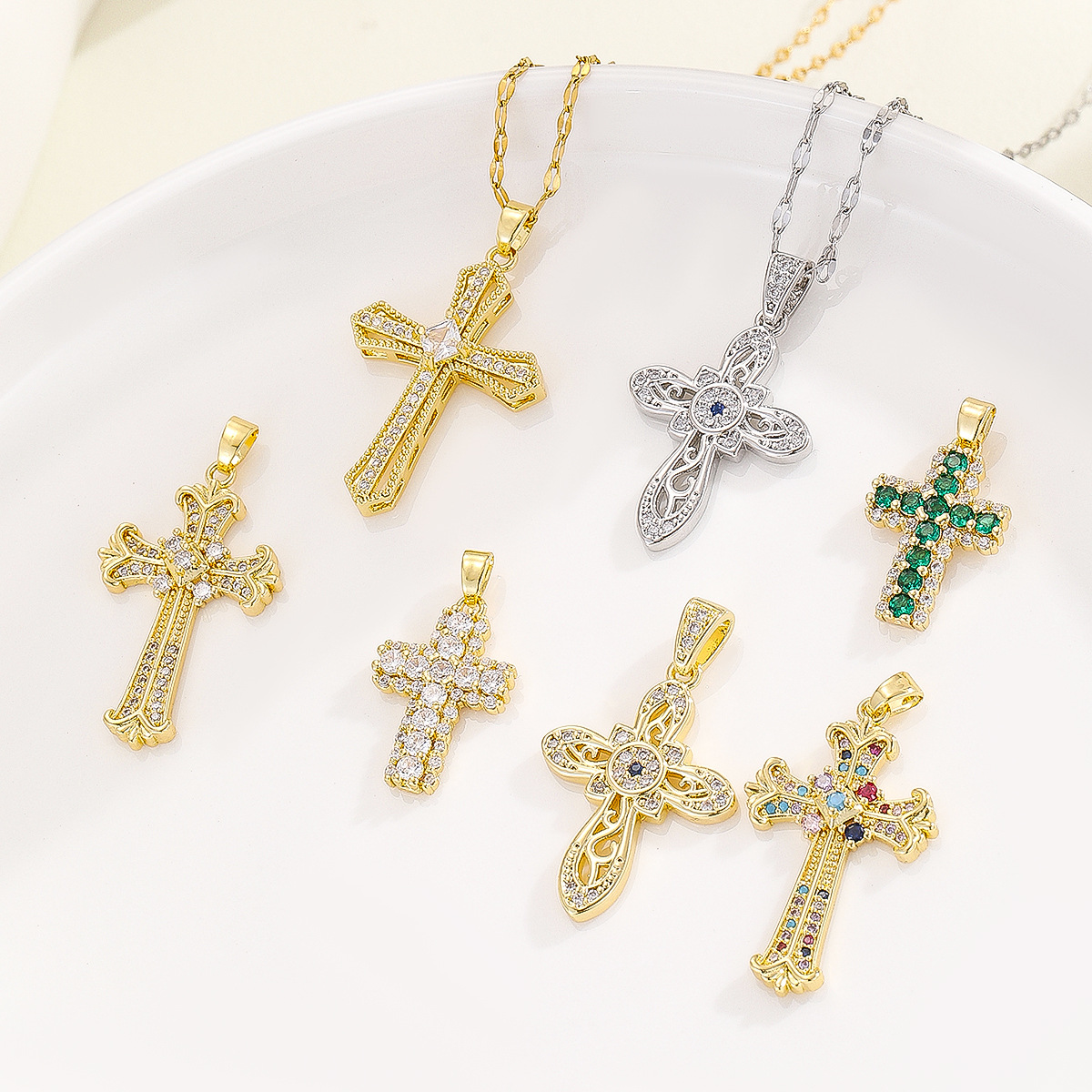 European and American style cross-border hot religious jewelry simple color zircon stainless steel chain necklace cross pendant