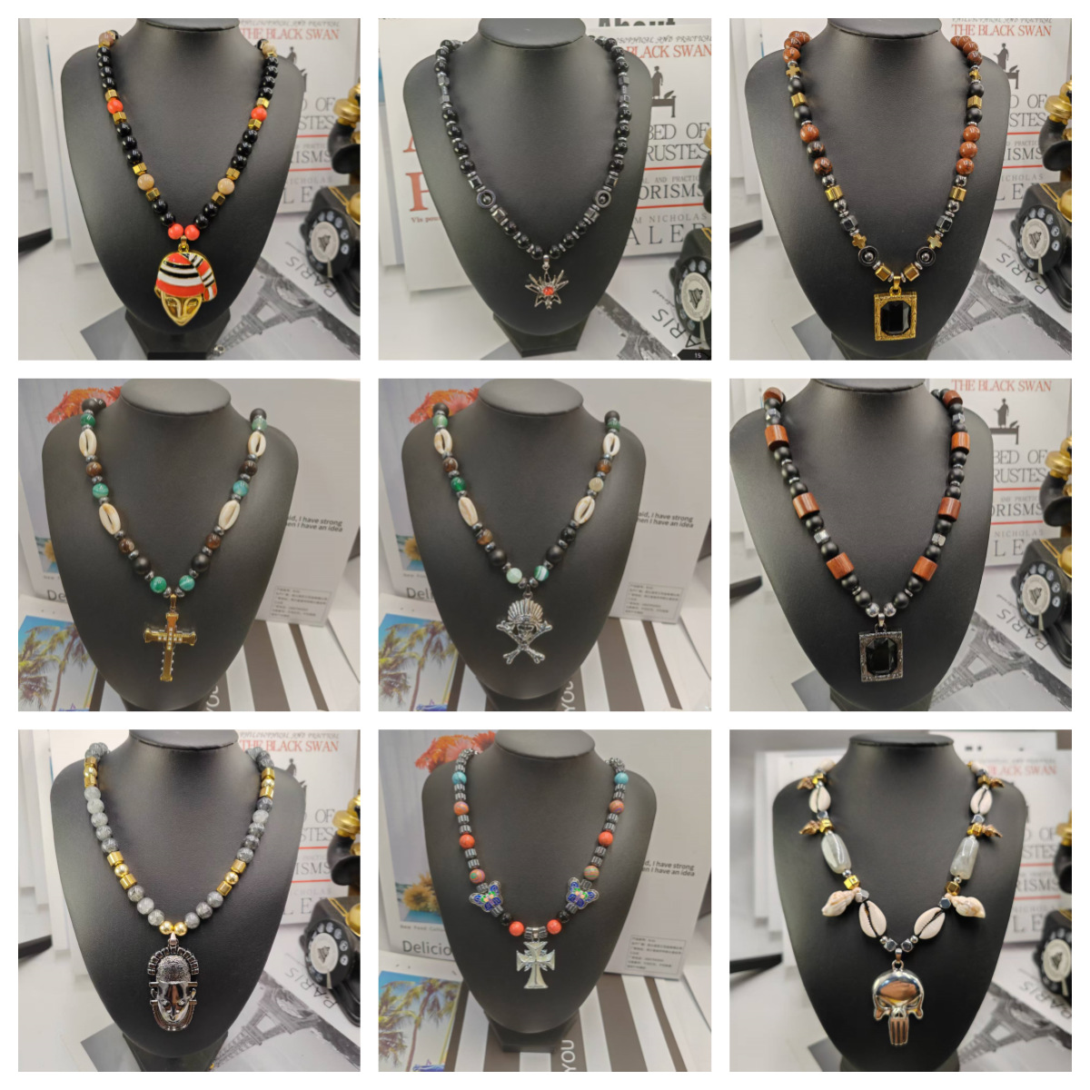 Cross-Border Spot Wholesale Buddhist Religious Jewelry Tourist Attractions Raw Stone Pendants Fashionable Ethnic Style Crystal Necklaces