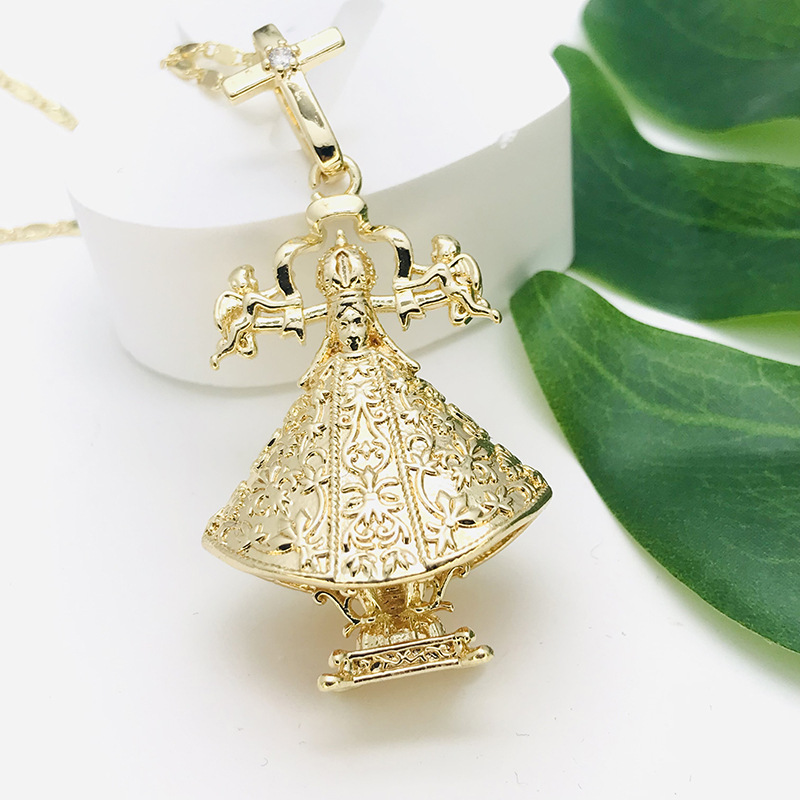 European and American Cross-Border Best-Selling Virgin Series Large Clock Pendant Chain Plated 18K Gold Necklace Religious Jewelry Wholesale
