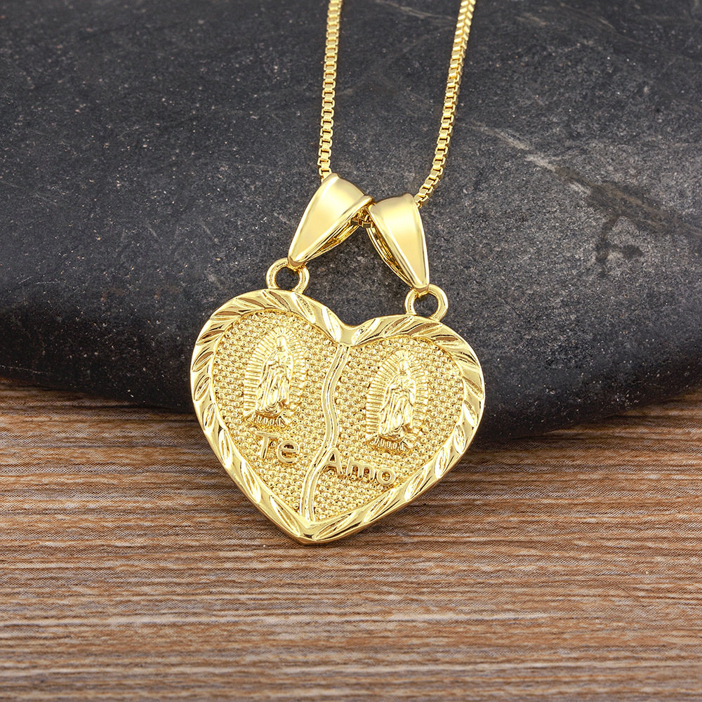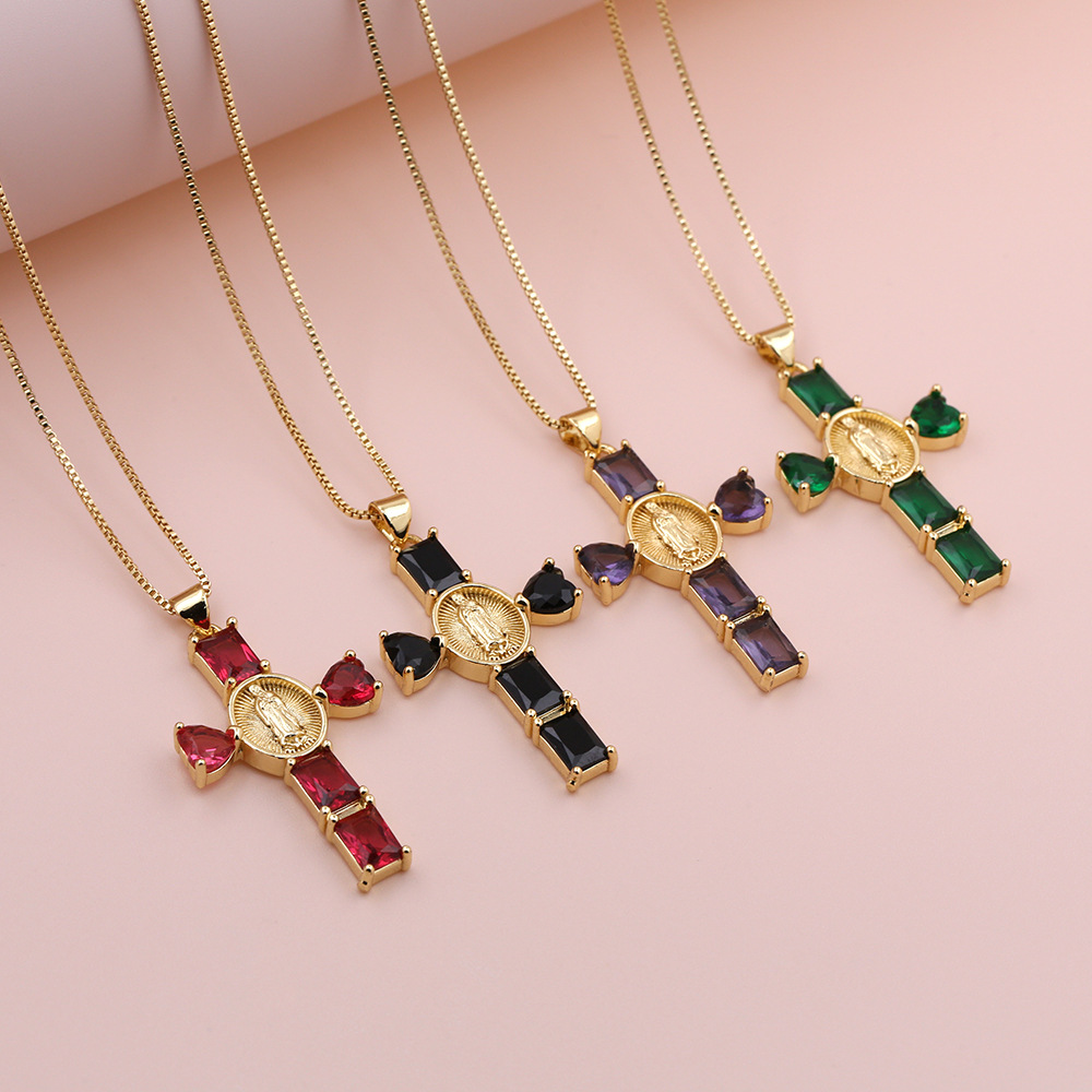 2024 Amazon Xiyin Temu Popular Virgin Mary Heart Cross Zircon Pendant Necklace Religion
