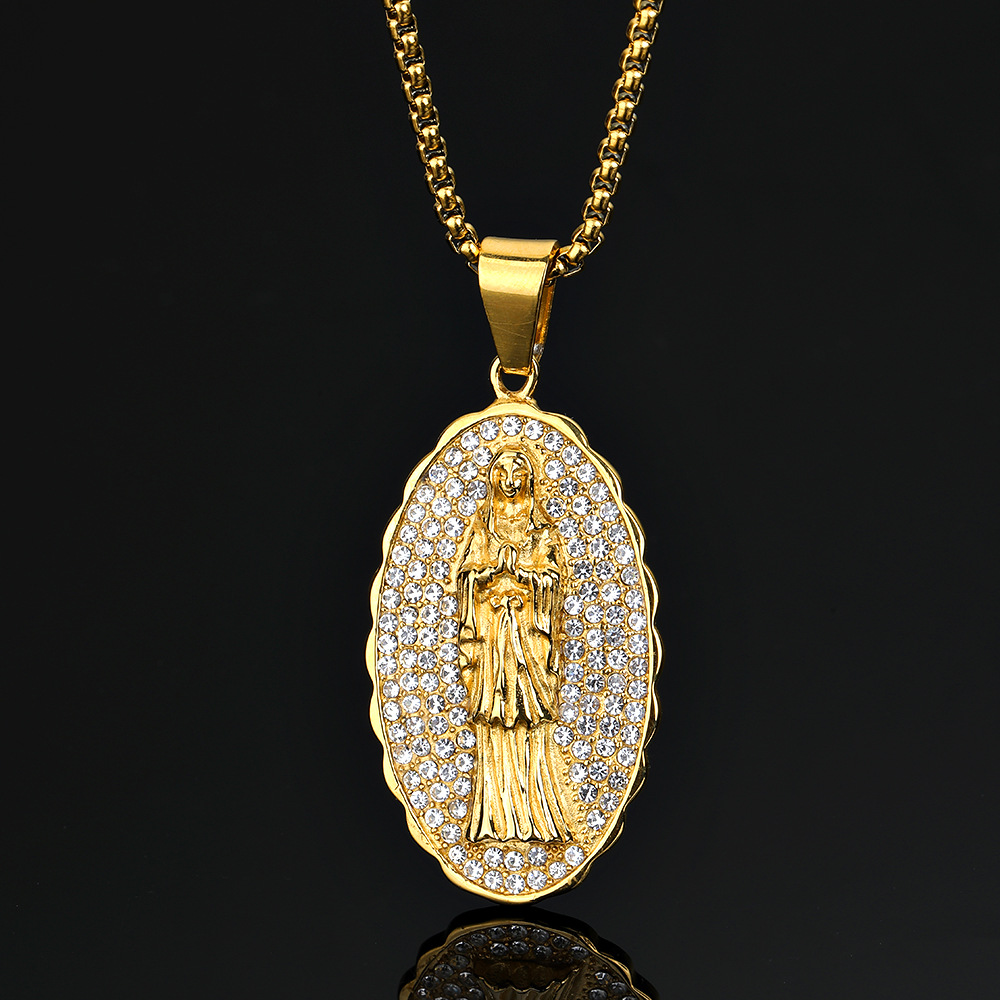 New European and American Fashion Jewelry Full of Diamonds Mary Maria Titanium Steel Pendant Religious Accessories Necklace Cross-Border Wholesale