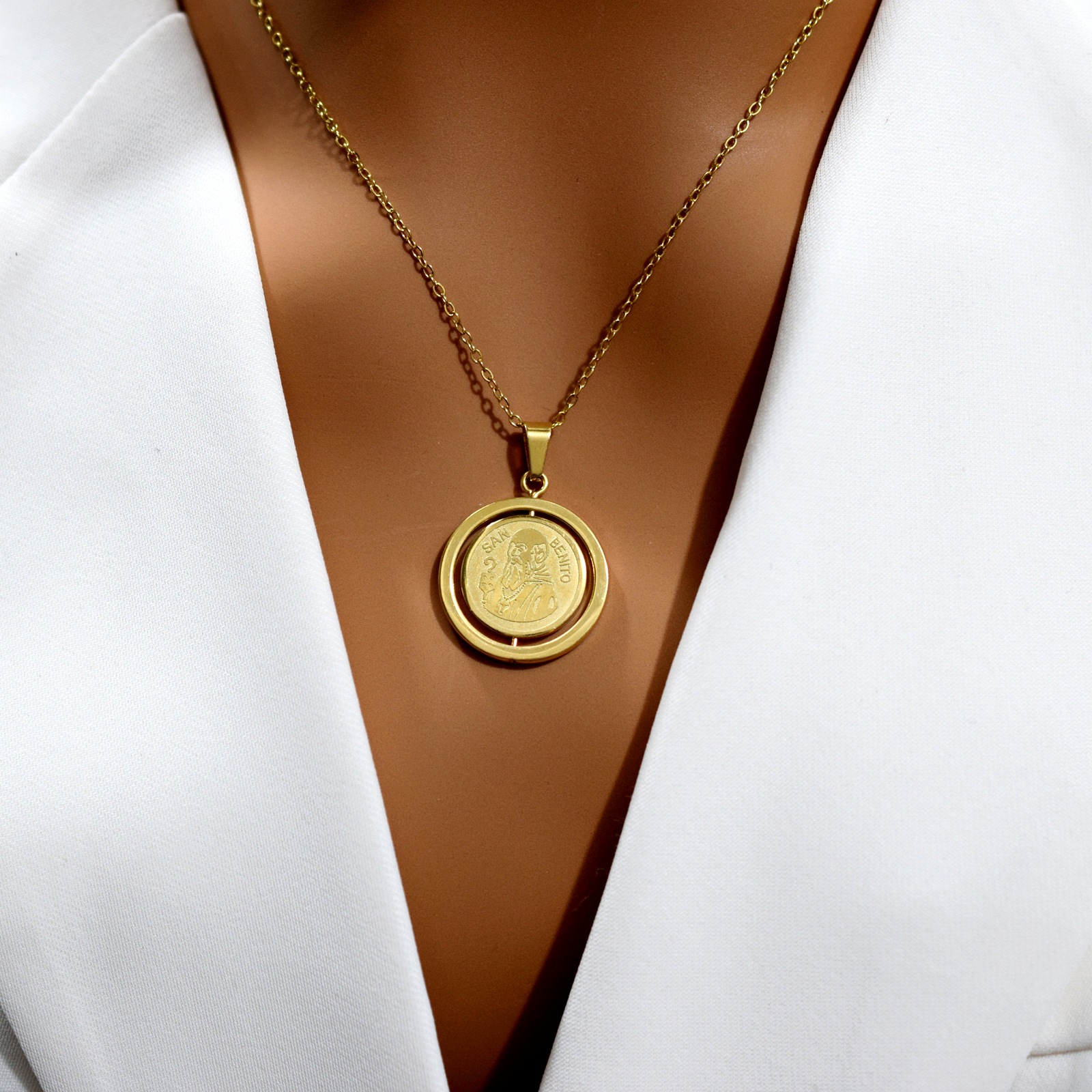 Cross-border Hot Sale New Religious San Benito Medal Rotatable Pendant Stainless Steel Commemorative All-match Light Luxury Necklace