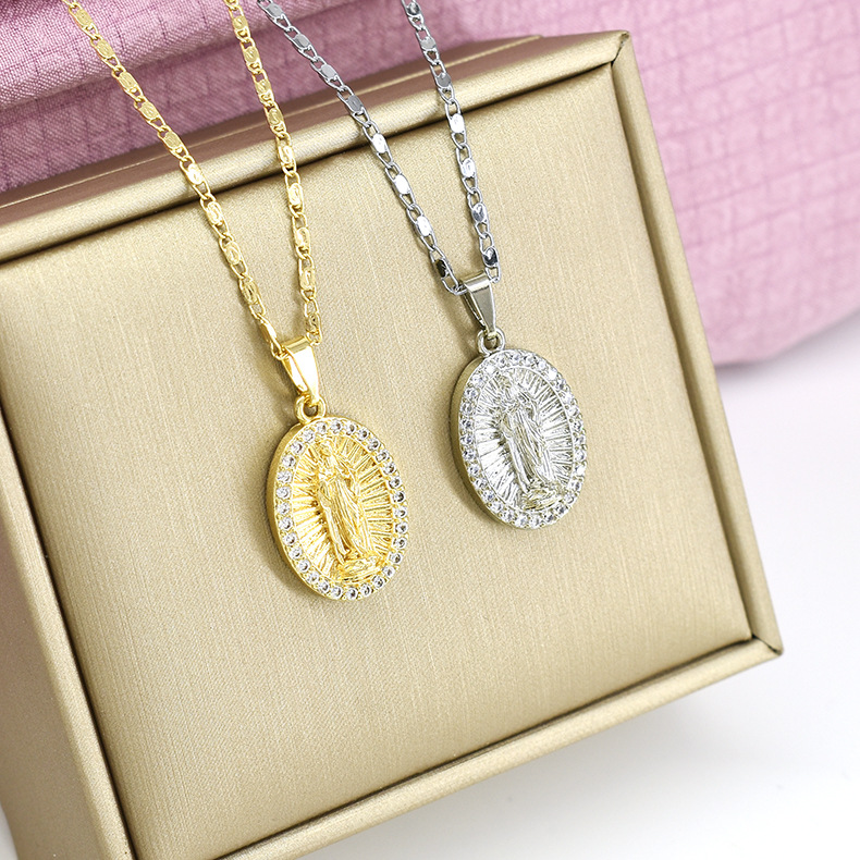 European and American fashion cross-border religious copper micro inlaid zircon pendant female jewelry Virgin Mary necklace