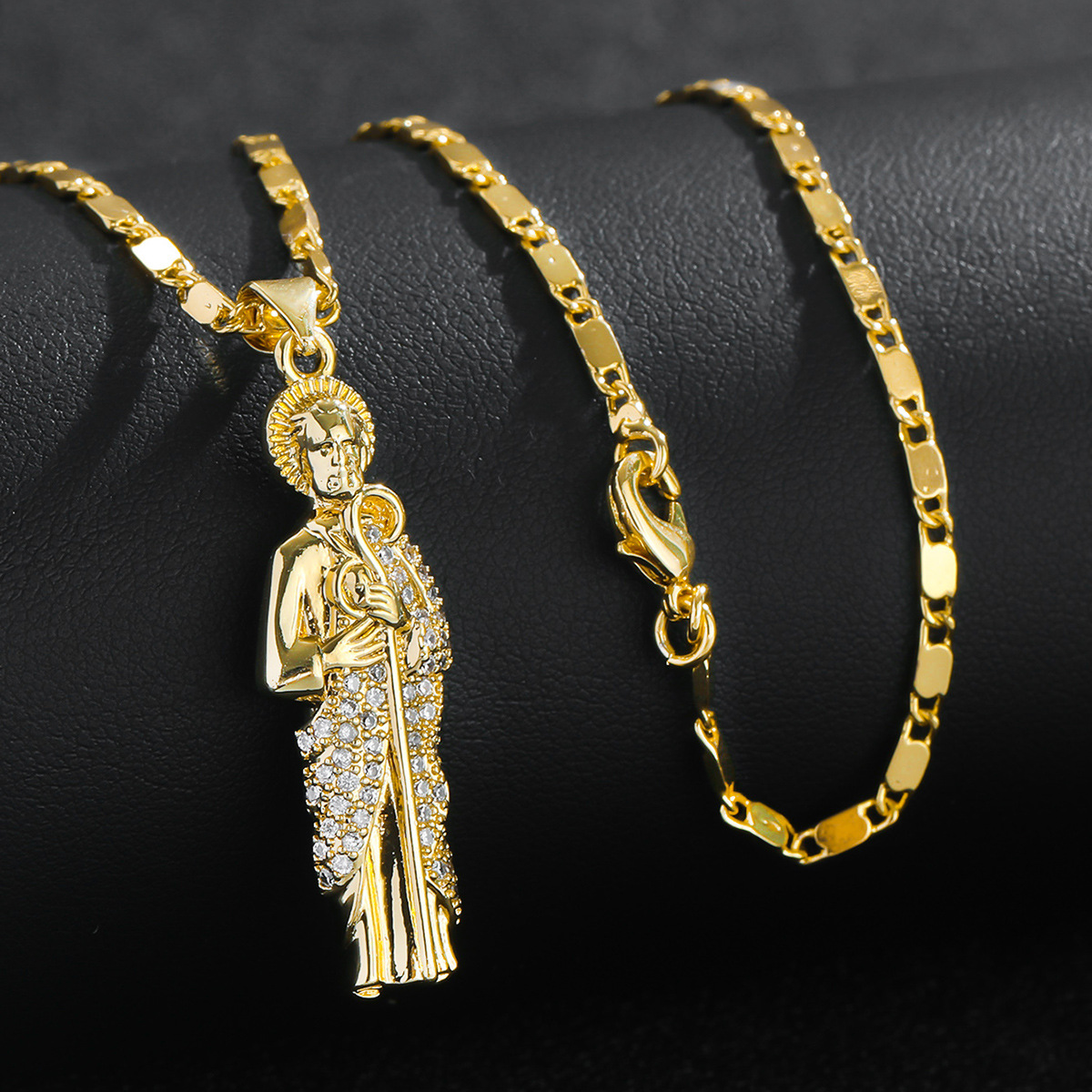 European and American Cross-Border Religious Personality Saint Jude Sweater Chain Jewelry Inlaid with Zircon Pendant Necklace Men's Retro Jewelry Hip-Hop