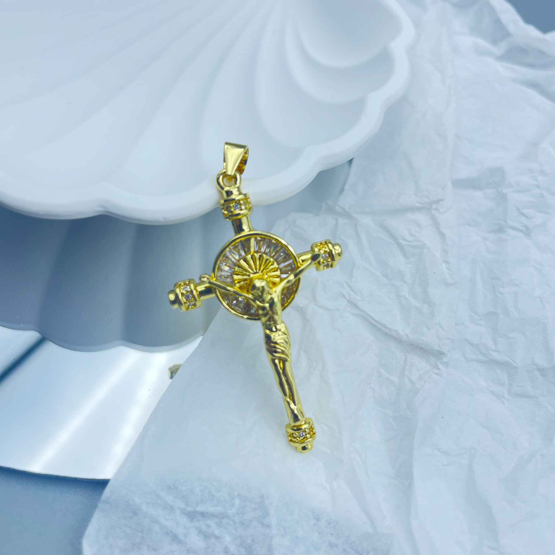 18K Inlaid Zircon Cross Pendant Religious Faith Necklace DIY Pendant Accessories Jewelry Source Angel