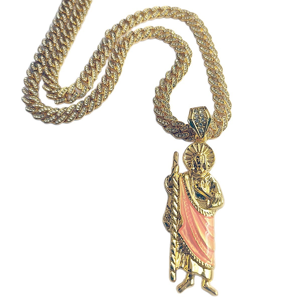 Europe and the United States cross-border oil religious St. Jude alloy pendant men's 8MM Cuban chain hip hop necklace personality retro