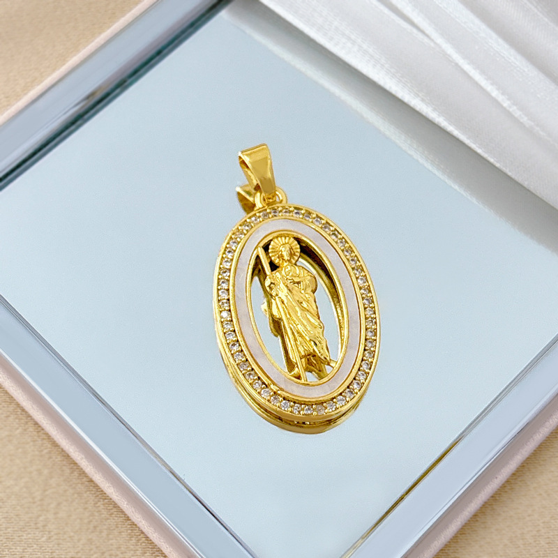 [Copper and Real Gold] Portrait of Sacred European and American Religious Foreign Trade Cross-Border DIY Handmade Jewelry Copper Zirconium Micro-Inlaid Pendant