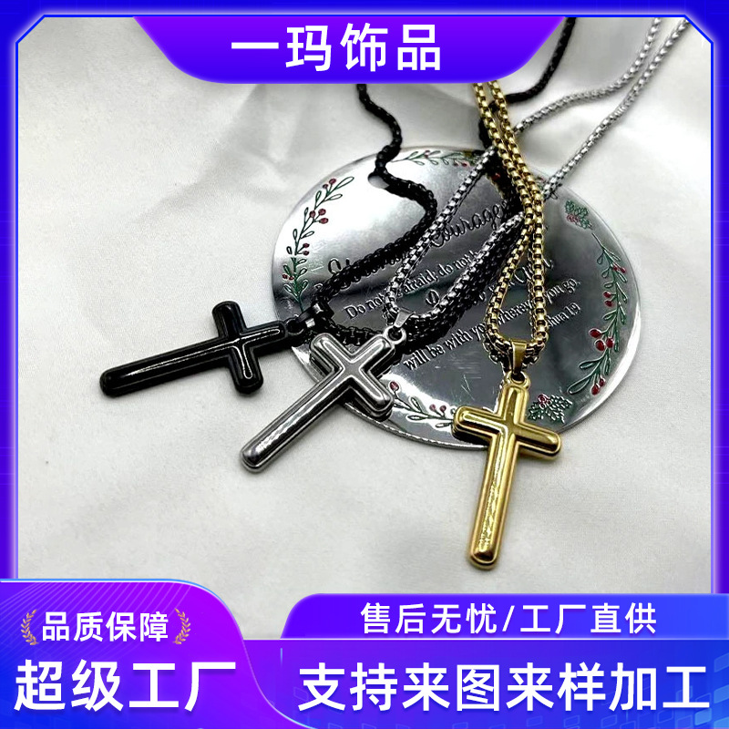 Amazon cross-border popular fashion simple cross necklace stainless steel religious Hip Hop couple pendant necklace for men
