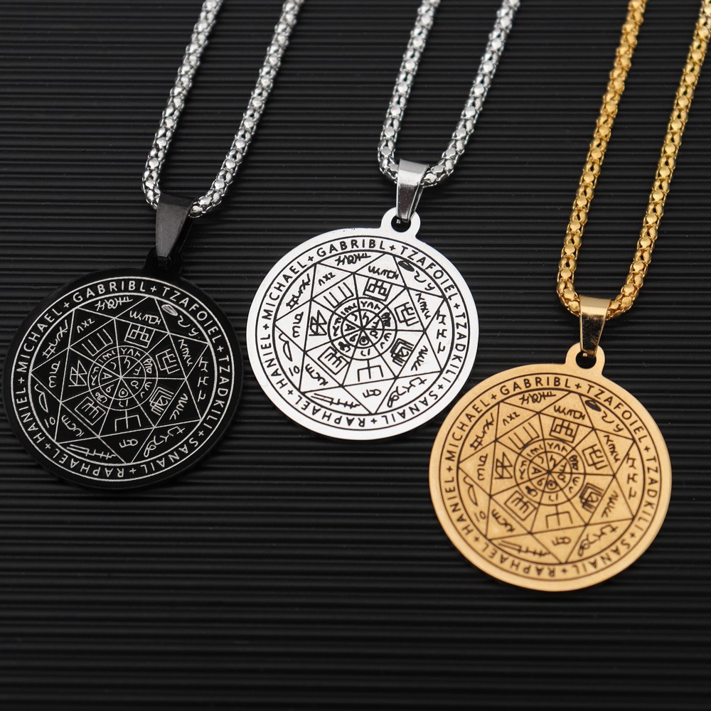Temu Hot Selling Seven Angel Magic Circle Pendant Scripture Seal Religious Totem Talisman Pattern Men's Necklace