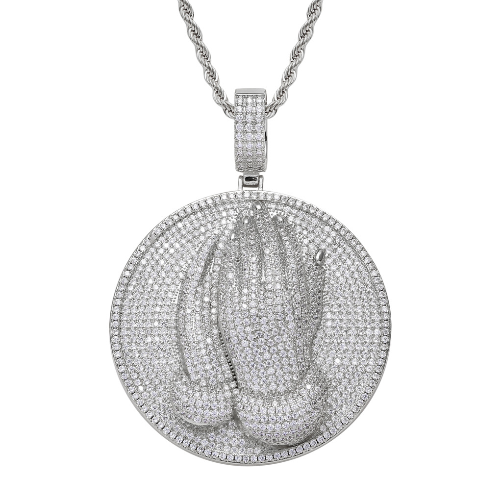 European and American Necklace Hip-Hop Pendant Religious Hands Prayer Micro-inlaid Zircon hiphop Hip-Hop Cross-border Accessories for Men and Women
