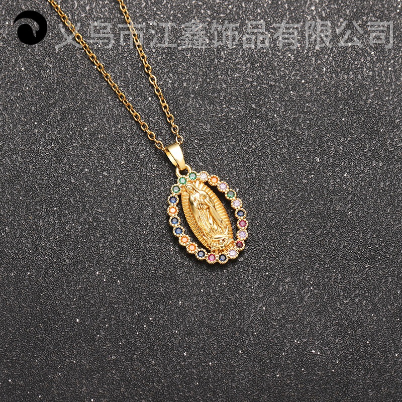 New Fashion Religious Copper Micro Inlaid Colorful Zircon Jewelry Accessories Faith Catholic Mary Pendant Accessories