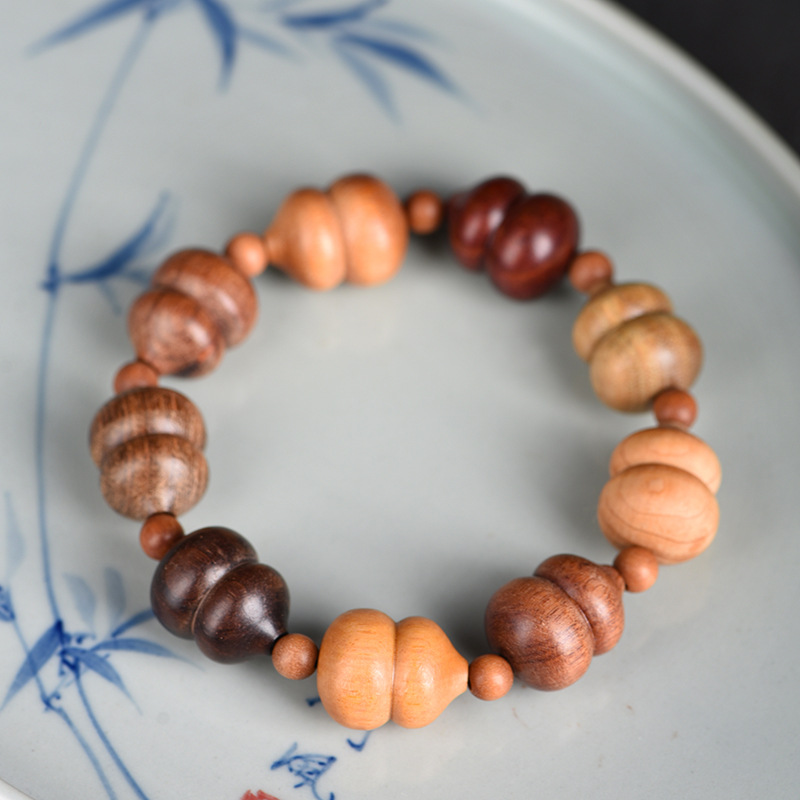 Multi-Treasure Orb Gourd Bracelet Green Sandalwood Red Sandalwood Buddha Beads Green Sandalwood Black Flower Pear Beads for Men and Women Fulu Beads