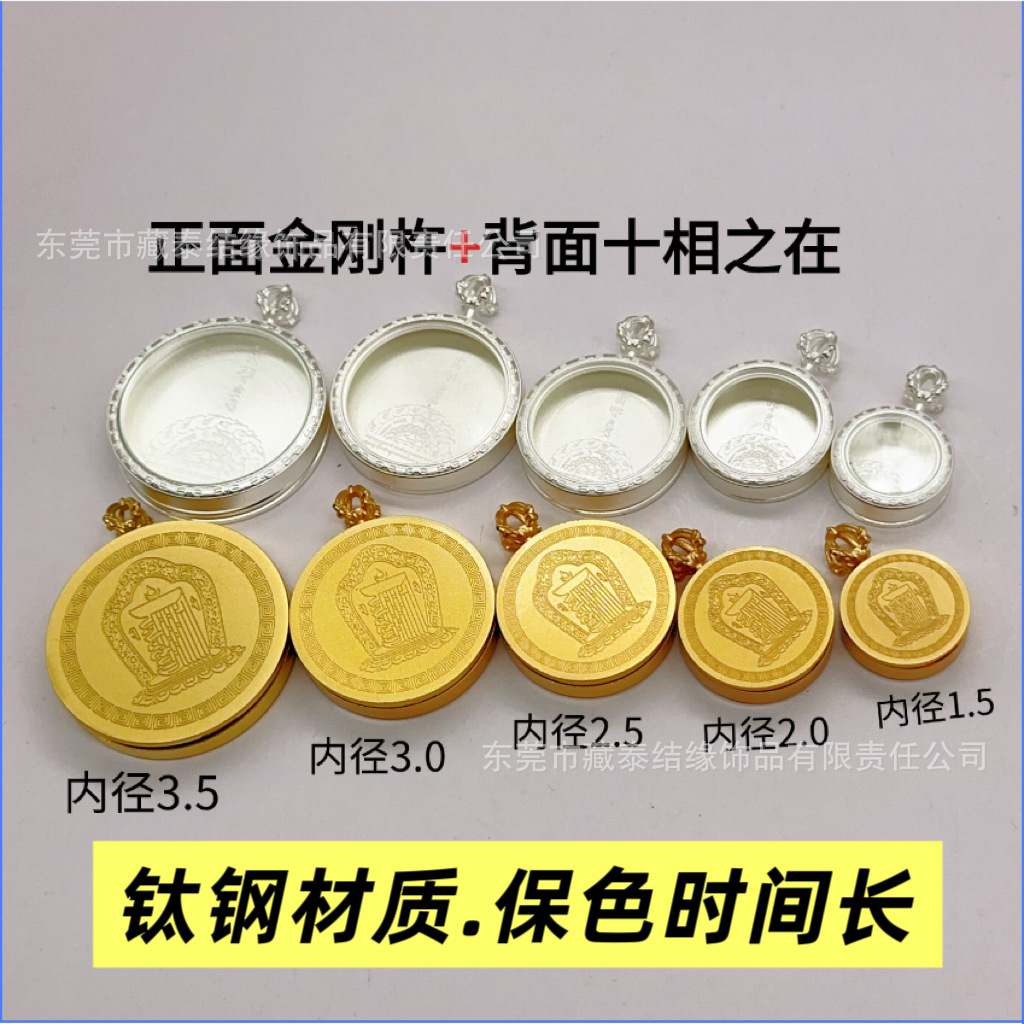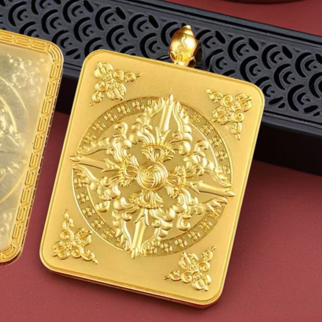 Wholesale Xizang Hand-Painted Double-Sided Box, Empty Box, Buddha Amulet Pendant, Ga'U Box, Auspicious Cloud Black God of Wealth Gold-Plated Card Necklace