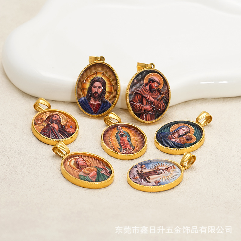 European and American Ins Style Fashion Virgin Religious Portrait Stainless Steel Colorful Oil Dripping Pendant Plated 18K Pendant Jewelry Wholesale