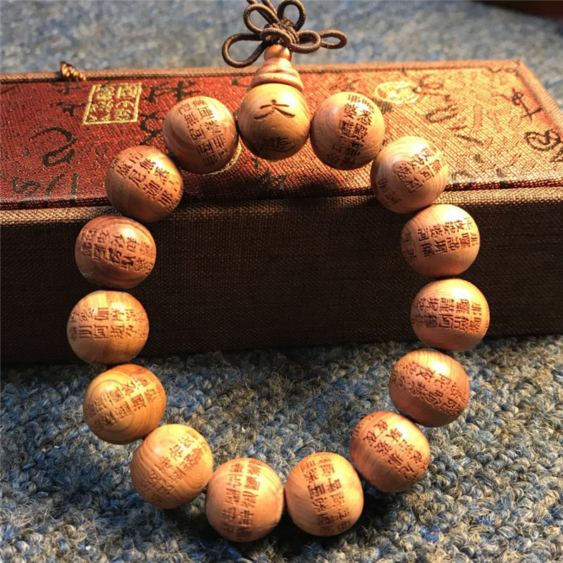 Factory supply natural cypress wood beads all red cypress wood carved Great Compassion Mantra bracelet