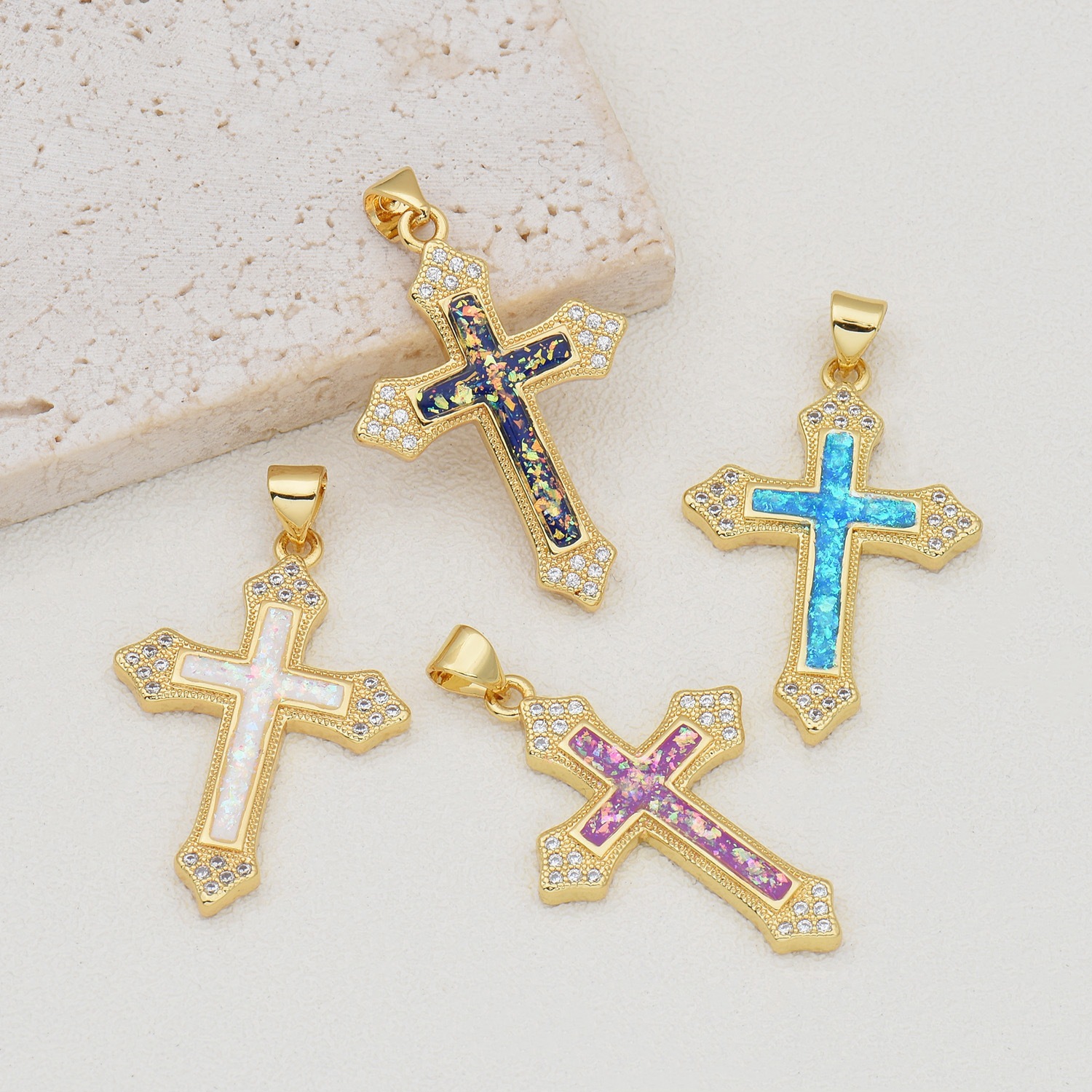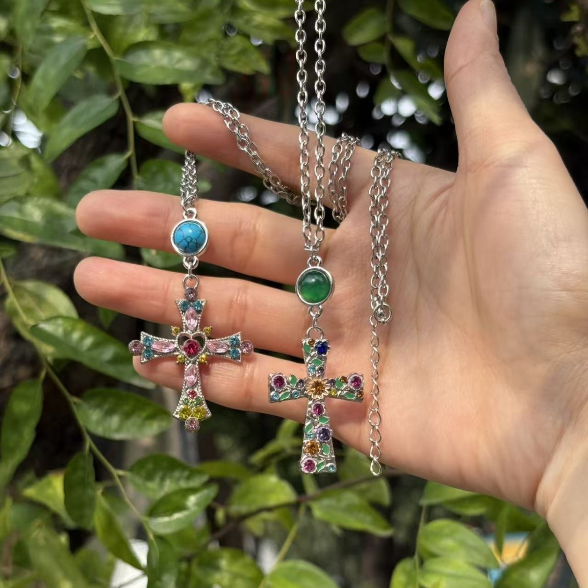 Baroque Style Flower Cross Necklace Pendant Fashion European American Style Small Plum Blossom Religious Jewelry Natural Stone Necklace