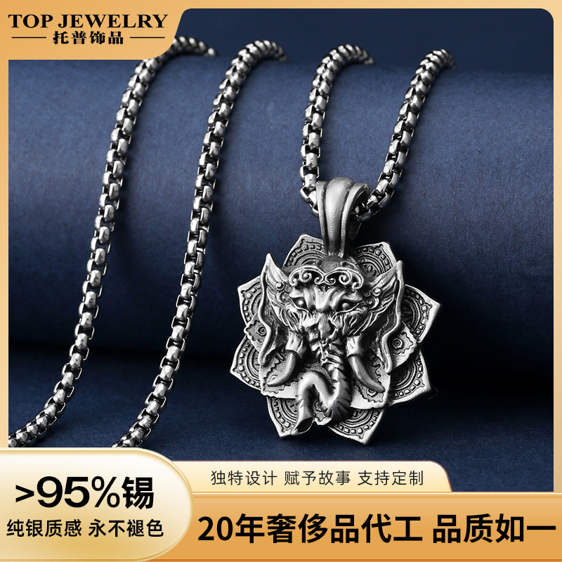 Hindu Elephant Head God Garnesa Pendant Religious Accessories European and American Men's Necklace Stainless Steel Jewelry Wholesale