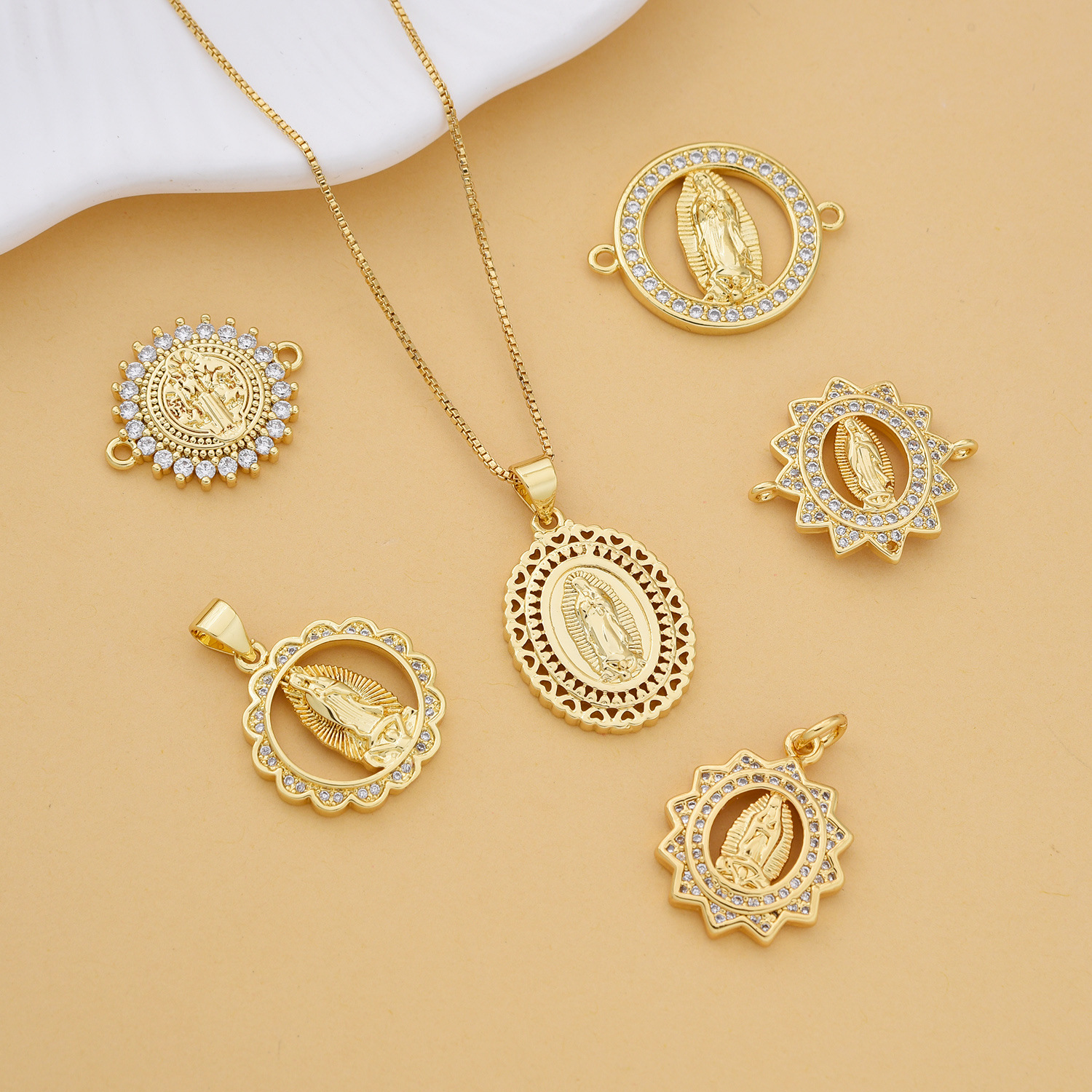 Jewelry European and American Fashion Cross-Border Religious Copper Micro-Paved Zircon Pendant Women's Jewelry Catholic Virgin Mary Necklace
