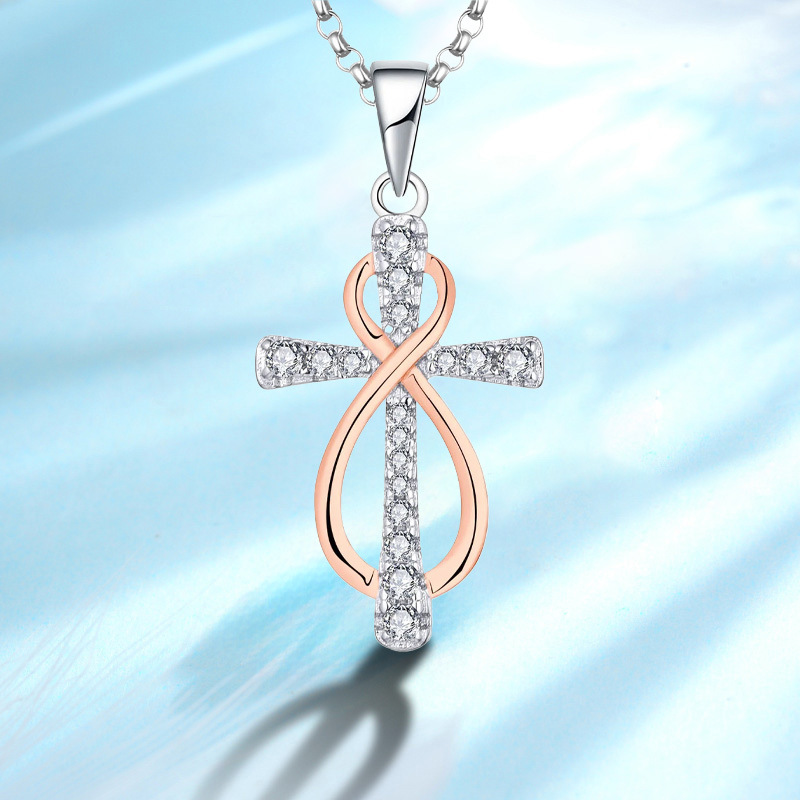 HECHENG Jewelry Micro-inlaid Zircon Cross Necklace European and American Style Zircon Necklace Jewelry Religious VD836