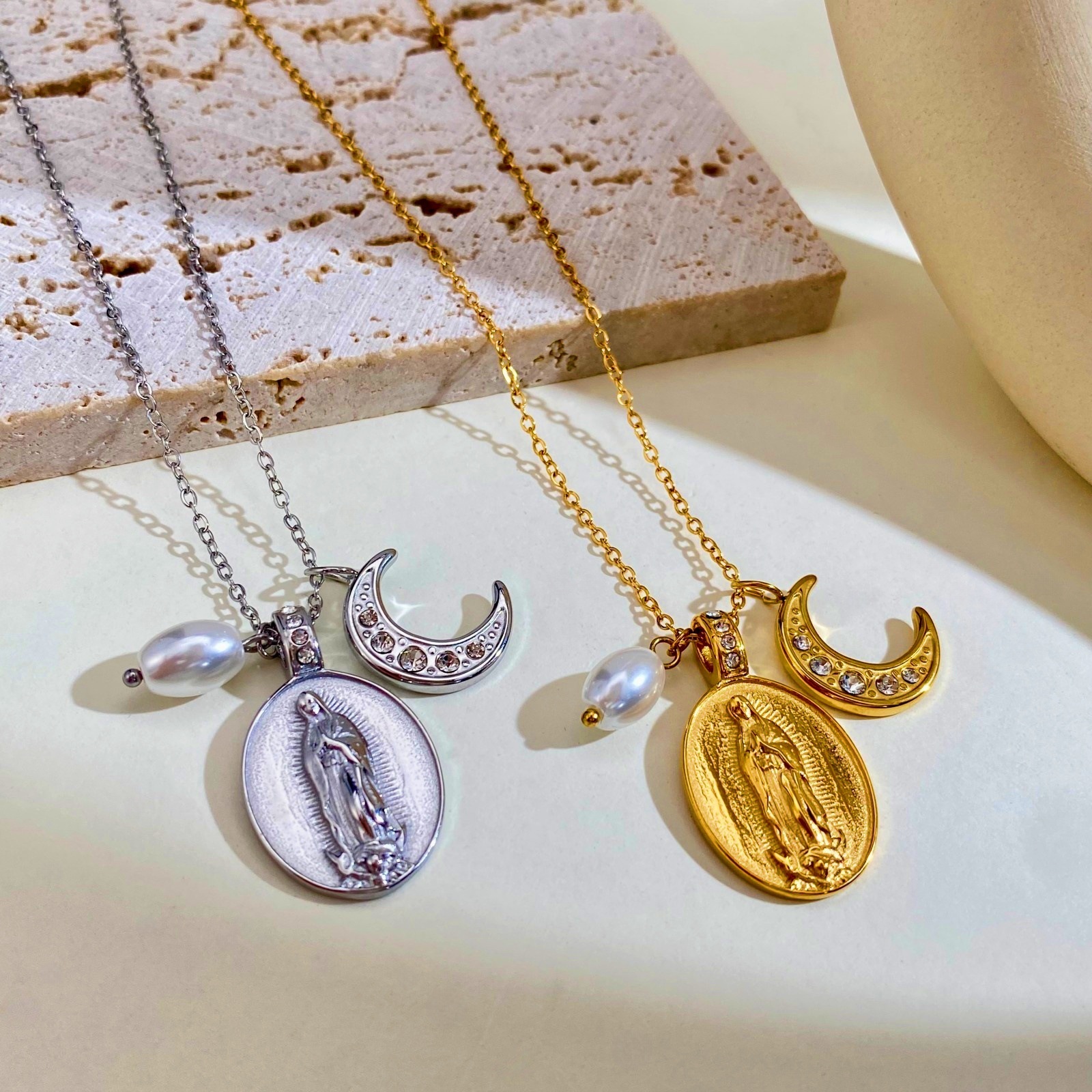 European and American Cross-Border New Religious Accessories Virgin Mary Portrait Pendant Long Necklace Men's and Women's Necklace Jewelry