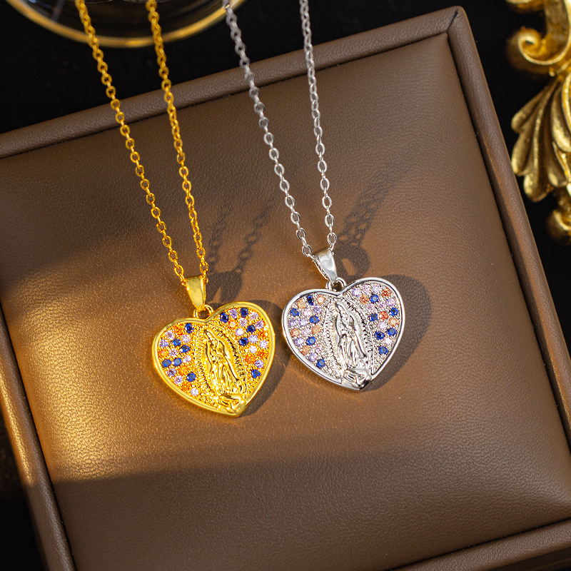European and American Fashion Cross-Border Religious Titanium Steel Love Necklace Women's Micro-Encrusted New Color Zircon Pendant Virgin Sweater Chain