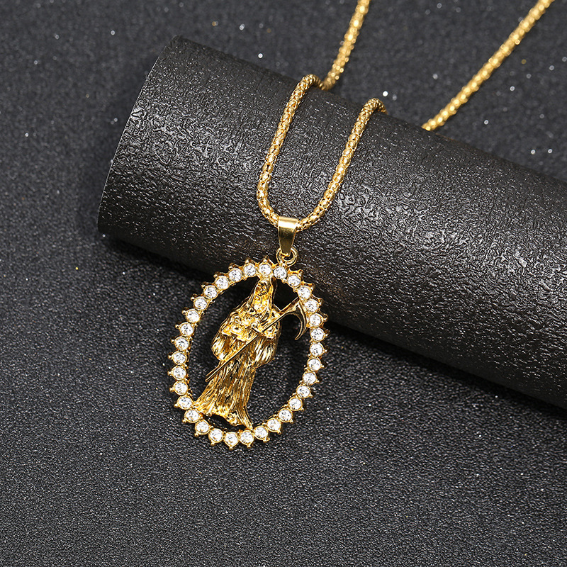 European and American Cross-Border New Style Hip-Hop Style Religious Sickle Death Chain Fashion Creative Death Pendant Necklace for Men