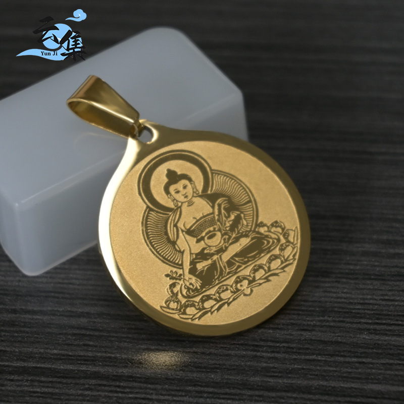 Buddha Necklace Titanium Steel Men and Women Square Pearl Stainless Steel Guan Gong Guanyin Bodhisattva Buddha Thai Buddha Pendant Chain