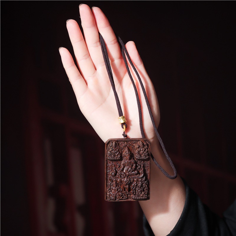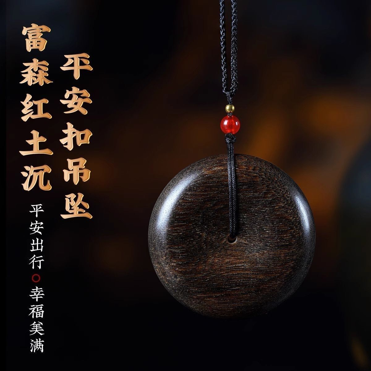 Fusen Red Earth Agarwood Landscape Pattern Safety Buckle Pendant Buddha Amulet High-End Jewelry Pendant Retro Ethnic Style Necklace