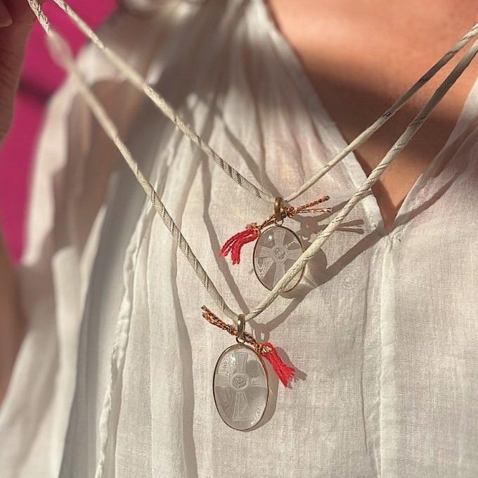 European and American Cross-Border Popular Religious Style Cross White Braided Rope Red Tassel Niche Design Daily Wear Accessories