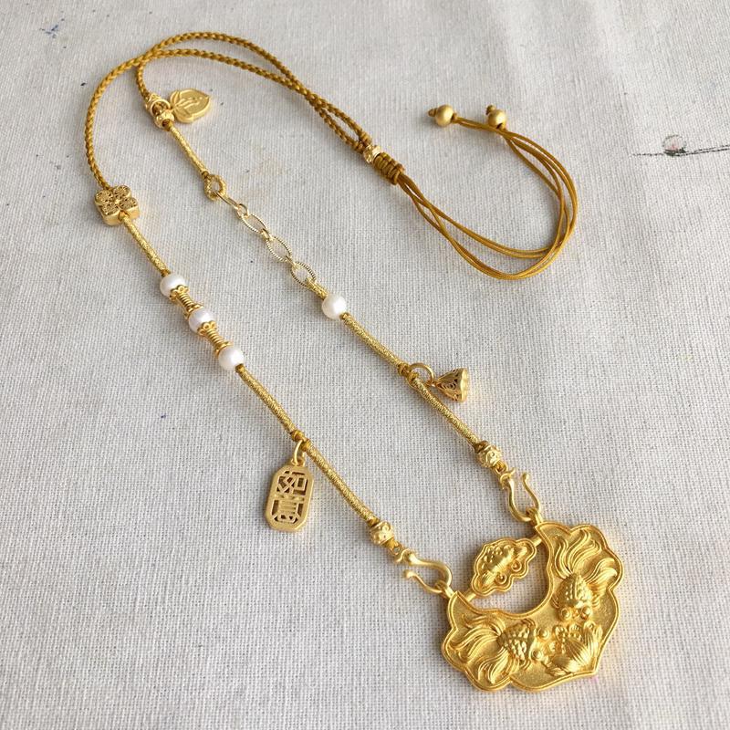 Handmade Woven Rope Long Life Lock Necklace High-end Sand Ruyi Lock Bag Pendant Buddha Brand Rope Gold Lock Woven Rope Pendant