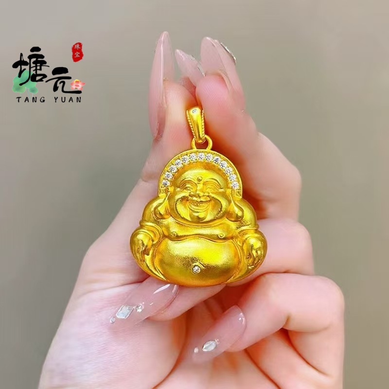 Gold Shop Same Style Sand Gold Inlaid Diamond Peace Buckle Maitreya Buddha Smiling Buddha Pendant Ancient Craft Buddha Amulet High-End Necklace