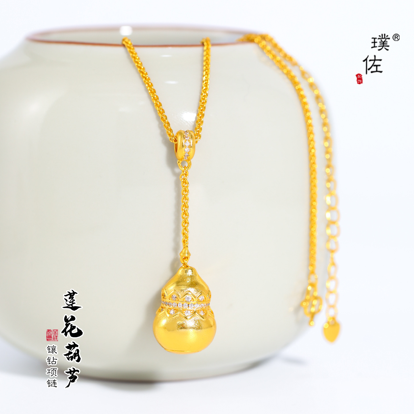 Puzuo Gold Shop's Same Style Gourd Pendant for Men and Women, Ethnic Style Necklace with Diamond Buddha Amulet, Fu Lu Pendant for Girlfriend
