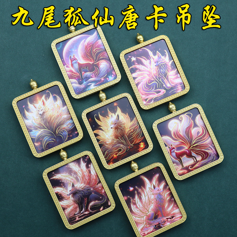 Wholesale Hand-Painted Golden Fox Fairy Golden Thangka Pendant Nine-Tailed Fox Buddha Necklace Ethnic Style Jewelry