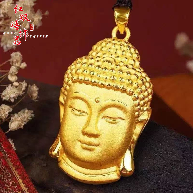 Sand gold Buddha head pendant peace buckle necklace female Buddha pendant imitation gold Buddha stall diy jewelry wholesale