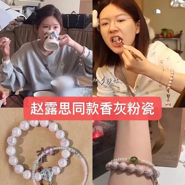 Zhao Lusi's Same Style Ash Pink Porcelain Buddha Bead Bracelet Beijing Temple Style Macaron Color Bracelet Wenwan Bracelet