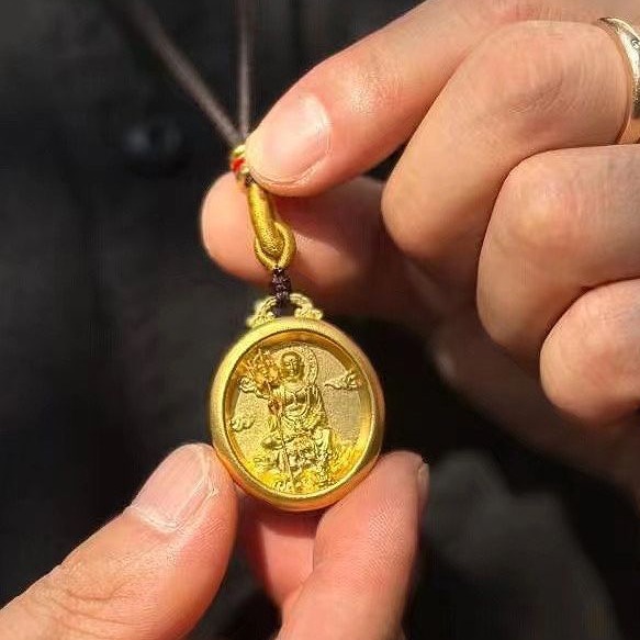 Ethnic Style Ksitigarbha Bodhisattva Gold Pendant Ancient Style Nanwu Dazuan Ksitigarbha King Round Buddha Pendant Necklace