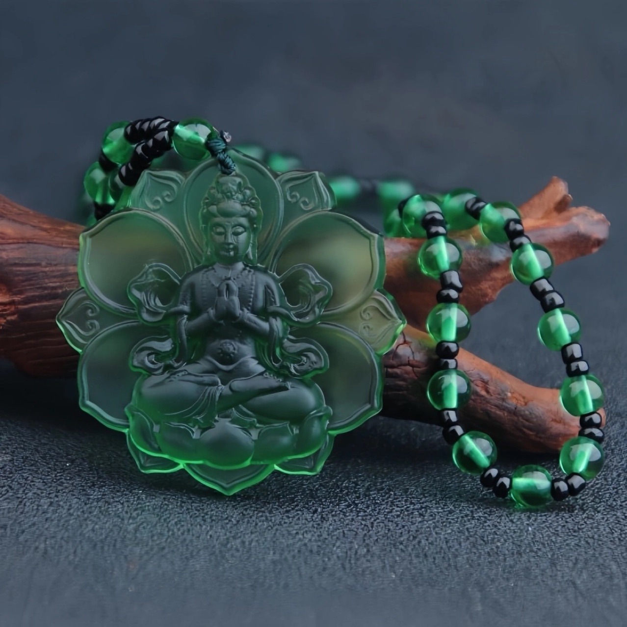 Imitation Sapa Green Mother Buddha Pendant Ancient Glazed Lace Guanyin Buddha Bodhisattva Necklace Men's and Women's Buddha Hanging Ornaments