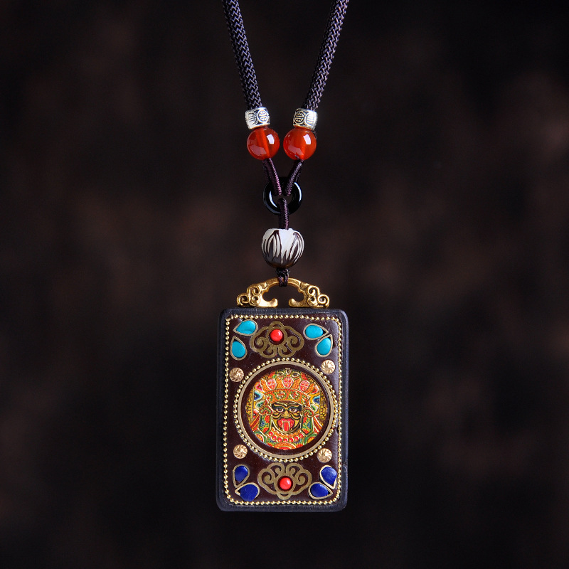 Darkwood Tathagata Pendant Couple Necklace Guanyin Ping An Brand Wen Play Car Accessories Wood Carved Buddha Card