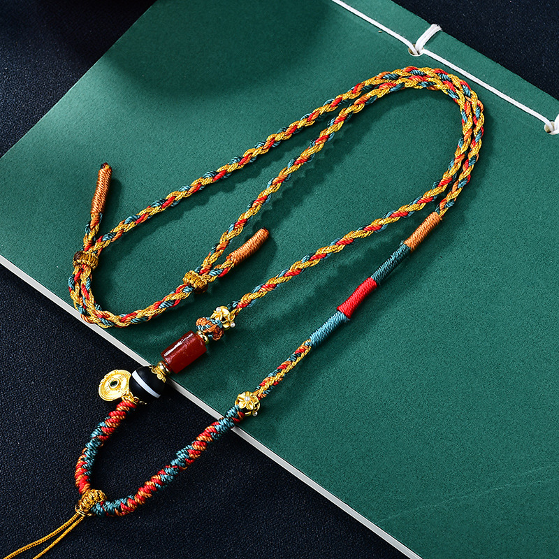 Hand-Rolled Cotton Necklace Braided Rope Can Be Hung with Jewelry Pendant Lanyard Ethnic Style Buddha Card Thangka Necklace Rope Skin-Friendly and Does Not Fade
