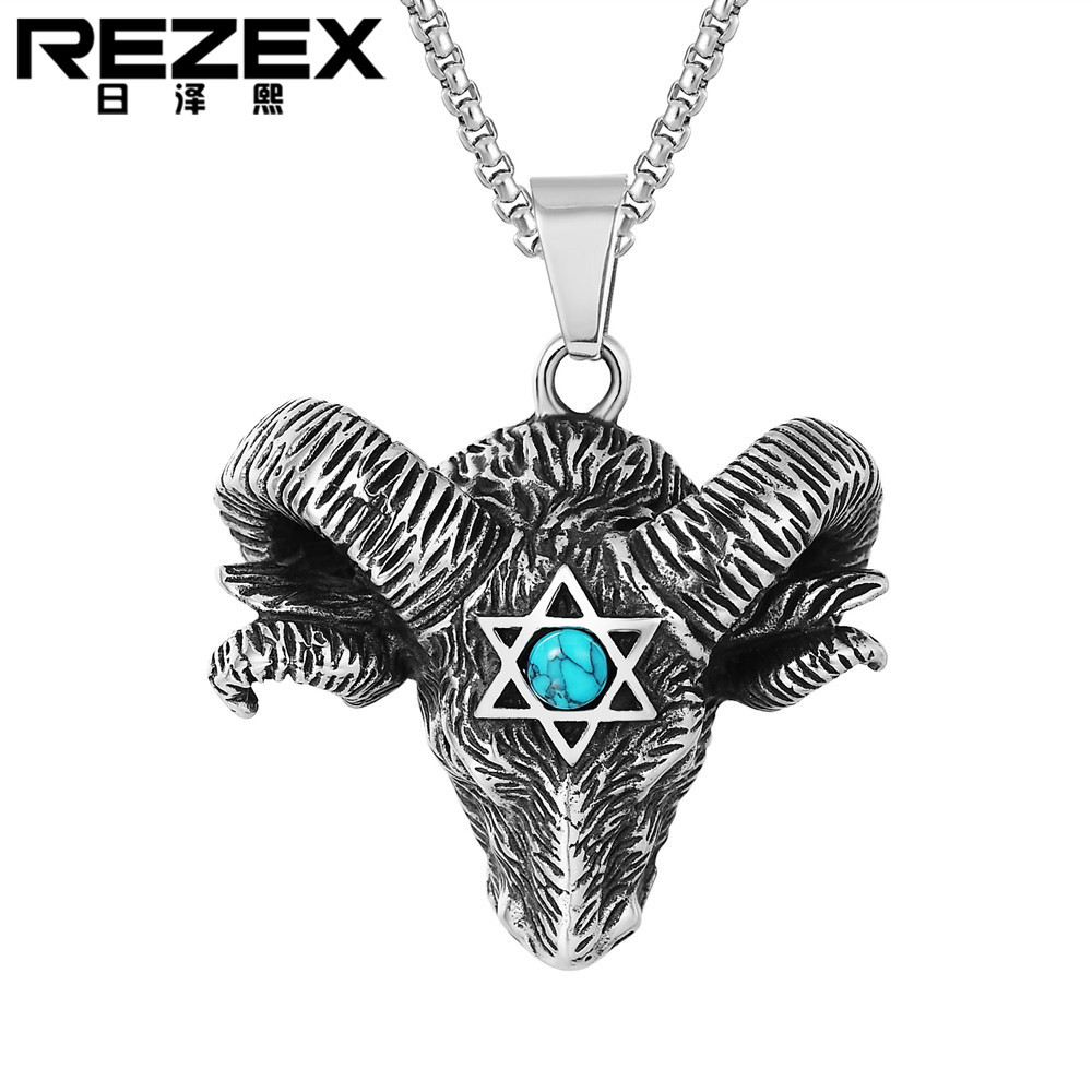 P0173-NK05 foreign trade jewelry retro Satan five-star hell sheep head titanium steel pendant men's necklace