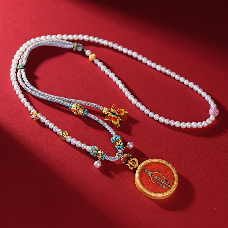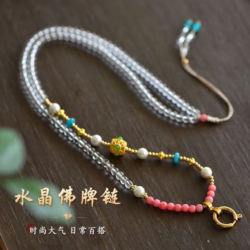 Chinese Style New Chinese Pearl Necklace Rope Thangka Buddha Pendant Chain Rope Men and Women Exquisite Light Luxury Universal Chain Jewelry