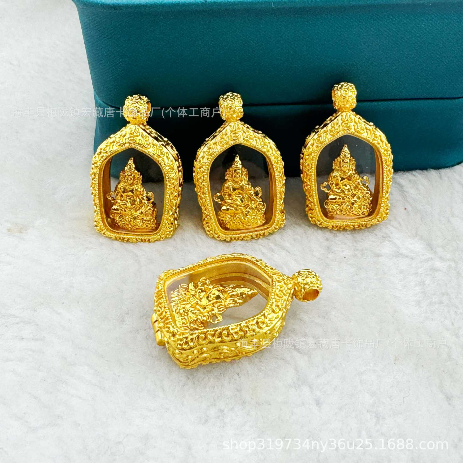 New Thangka Golden Gawu Box Pendant Aluminum Alloy 18K Electroplated Mazu Hand-Painted Gold Buddha Necklace
