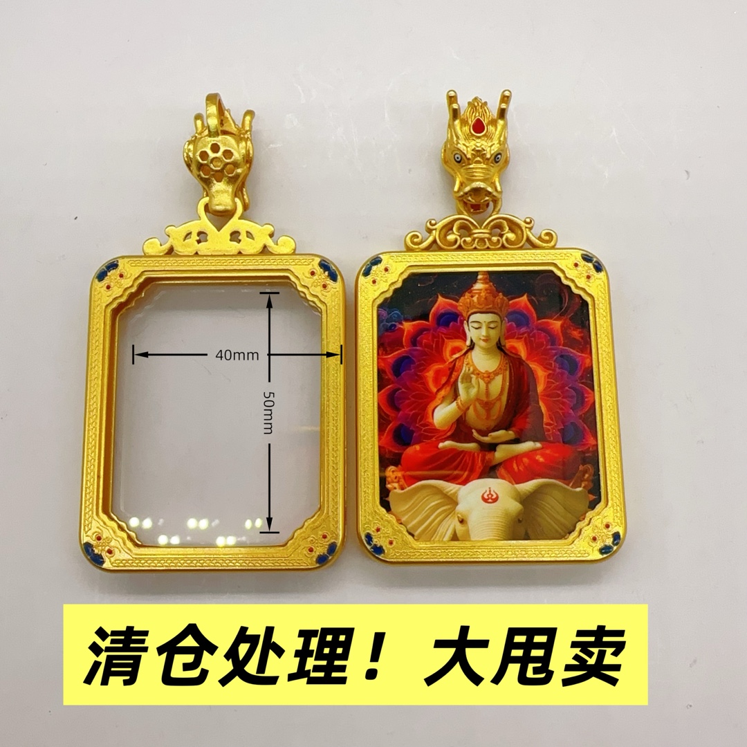 Titanium Steel Gold-Swallowing Beast Dragon Head Double-Sided Thangka Pendant Stainless Steel Shell Manufacturer Wholesale Buddha Amulet Double-Sided Empty Box Necklace