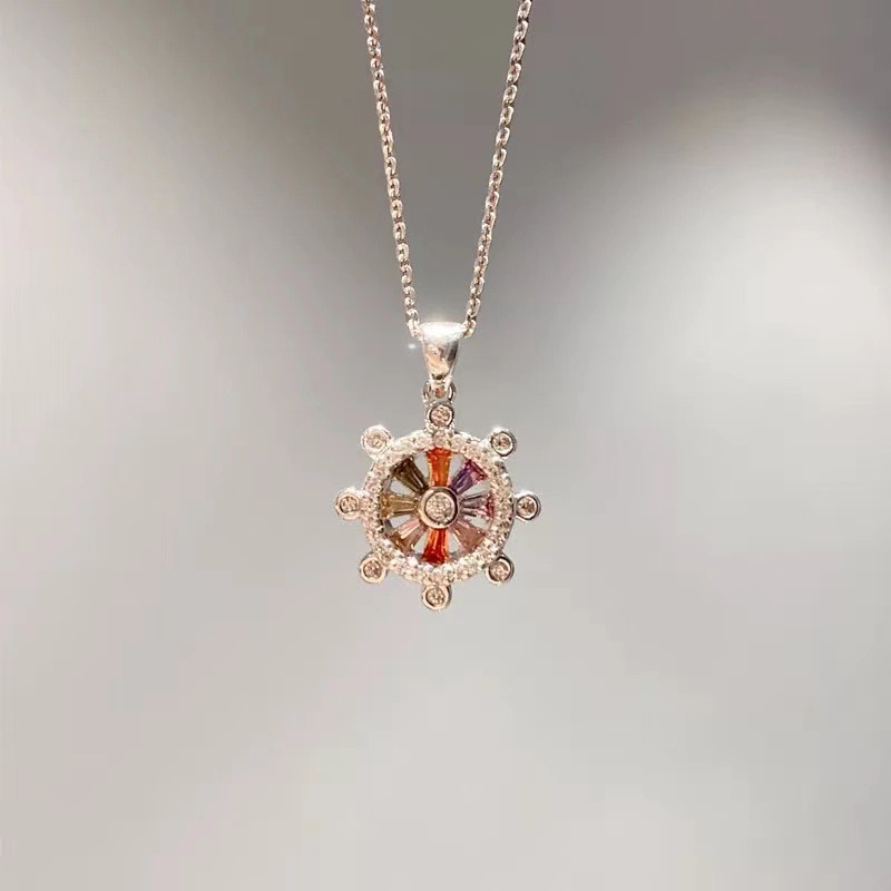Thailand Buddha Brand Azan White Mine Octagonal Wheel Necklace Retro Zircon Exquisite High-grade Niche Pendant Creative Necklace