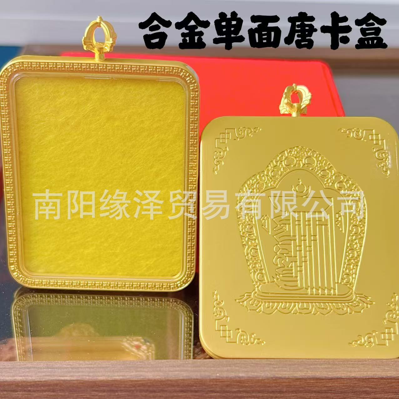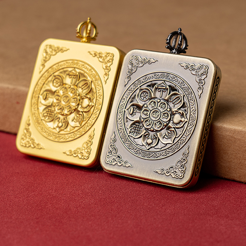 Alloy Gold-Plated Square Portable Xizang Thangka Pendant Necklace Frame Box Shell Buddha Amulet Gau Box Empty Box